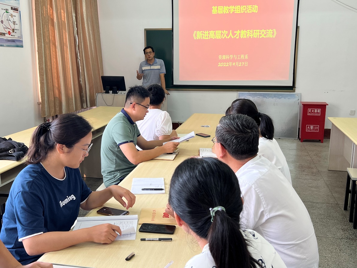 2022年9月27日,资源科学与工程系进行新引进高层次人才教学、科研交流活动。资源科学与工程系新引进教师王蛟博士原为中国地质调查局青岛海洋地质研究所海洋油气地质室正高级工程师,长期致力于含油气盆地层序地层学、沉积学、石油地质学等领域的科研工作。先后承担、参加并完成国家级、省部级等攻关课题及油田委托项目20余项,主持完成国家自然科学基金一项、国土资源部重点实验室开放基金面上项目一项,具有丰富的科学研究经验。