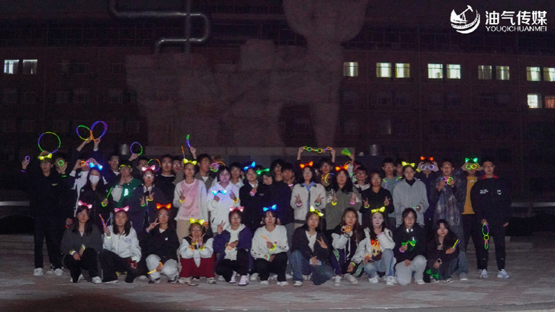 随着活动正式开始,全体成员在操场集合完毕,他们身着荧光装备,在夜风轻拂中踏上了这场光影与活力交织的夜跑旅程。在跑道上,荧光闪烁,欢声笑语,学子们用脚步丈量着青春,用汗水书写着激情。油气传媒的同学们则手持相机,用镜头记录下这难忘的一幕幕,每一张照片都定格了青春与梦想的瞬间。