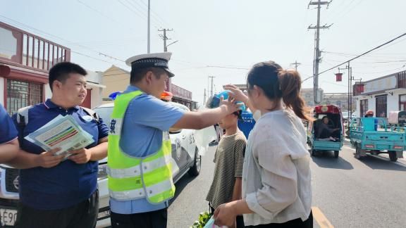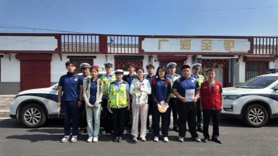 为保障牛庄大集交通安全、提升居民安全意识,志愿服务队联合东营市公安局交警支队直属一大队六中队,在集市向骑电动车居民发放头盔、反光贴。民警和志愿者以诙谐的语言表述头盔正确佩戴法,并为车辆粘贴反光贴;居民们承诺将严格遵守交通规则,将交通安全放在首位。