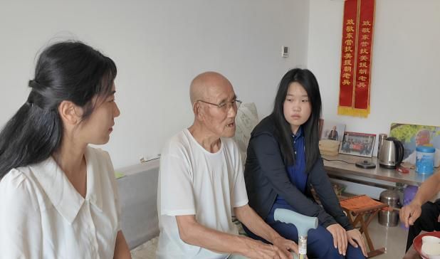 在慰问抗战老兵时,94岁老兵崔志明以顺口溜的形式向队员们讲述了上海战役与抗美援朝的真实情景,“枪林‘嗖嗖’擦耳过,战友‘扑扑’往前冲”,句句血火,却迸出钢铁信念,令队员们热泪夺眶。临别,队员们向崔老送上祝福,崔老也嘱咐队员们“好好学习,为国家做贡献”。