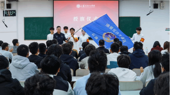 强化组织引领,做实顶层推动“示范场”。学院党总支将反诈工作提升到“平安校园”建设的战略高度,系统规划、周密部署。召开专题会议8次,学习传达上级精神,并在党总支会议中专题研讨,形成了“党政齐抓、部门联动、全员覆盖”的责任体系。学院领导率先垂范,下沉课堂一线开展反诈宣讲20余次;党员教师带头执行“课前3分钟”反诈小课堂,实现“教师人人讲反诈”;辅导员队伍更是主力军,累计召开主题班会百余次,坚持每周深入宿舍排查,将预警信息精准“推送”至学生生活的最小单元。在安全月的启动仪式上,学院正式成立“油盾反诈先锋队”并举行授旗仪式,这支队伍不仅是宣讲队,更是示范队,通过深入课堂、宿舍宣讲70余次,覆盖全院学生2400余名,将顶层设计的“规划图”转化为全员行动的“施工图”,筑牢了反诈工作的组织根基和思想根基。