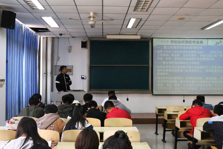 讲座主要是以演讲和互动的形式开展。讲座期间,主持人结合目前天气变化,以流感为例,用通俗易懂的语言从流感传播的途径,流感的症状、危害及如何预防等方面进行生动的讲解,详细介绍了流感和普通感冒的区别,尤其是由流感病毒引起的急性呼吸道传染病。最后,通过借助肺结核宣传短片,让同学们了解一些真实的传染性疾病案例。