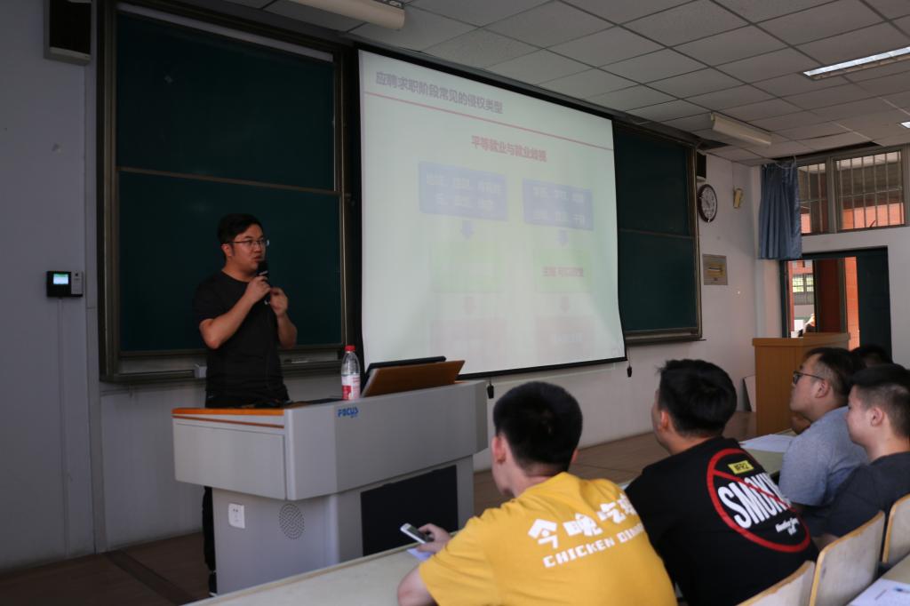 讲座一开始,仝老师就现阶段毕业生就业市场环境恶化、毕业生法律知识知之甚少、职业生涯保障的现实需求三类客观因素,强调毕业生了解就业法律的重要性,希望同学们能够更好的利用法律武器,保护自己的合法权益。