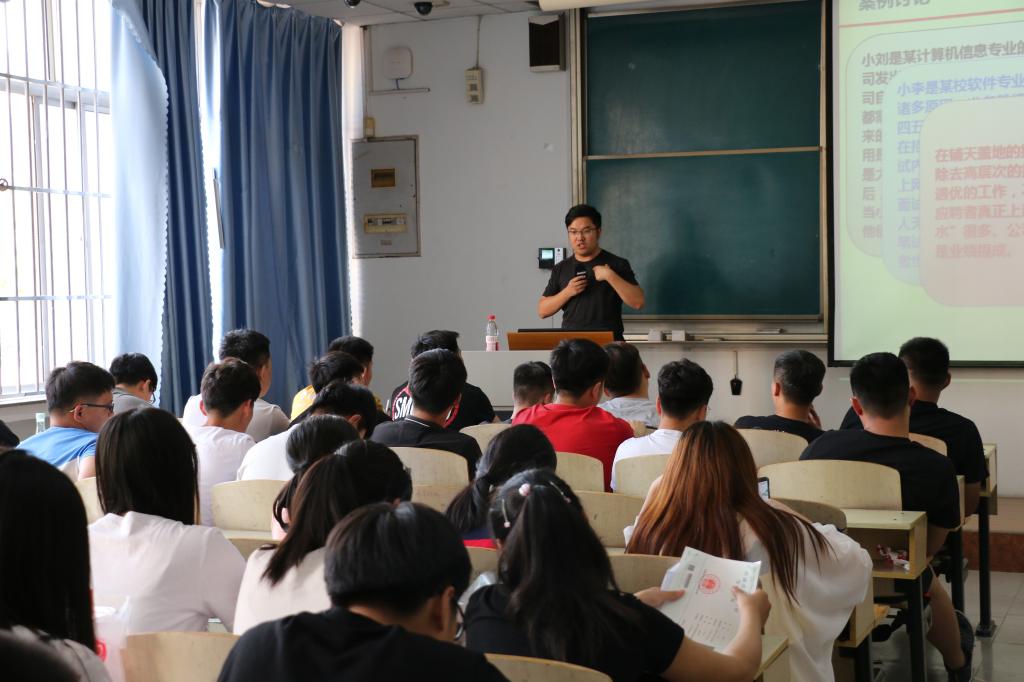 2018年6月4日,文法与经济管理学院学生工作办公室主任仝世涛老师为油气工程学院全体毕业生开展了题为应聘求职阶段的就业侵权与实习法律讲座。