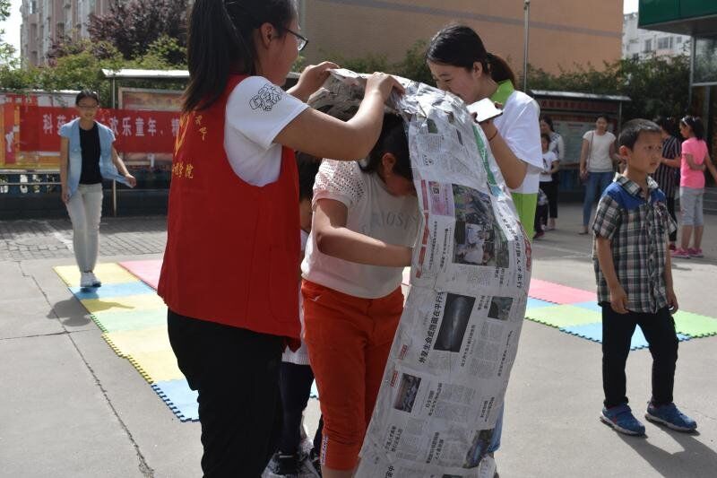 本次活动志愿者们给孩子们准备了需要默契配合的两人三足和背对背夹球走、锻炼平衡能力的托球跑以及考验团队协作能力的报纸风火轮等活动。孩子们按照年龄平均分成四组,每组在志愿者的带领进行练习和报纸风火轮制作。孩子们根据自己的优势明确分工,有秩序地准备着,在活动准备期间家长也纷纷上场帮忙。