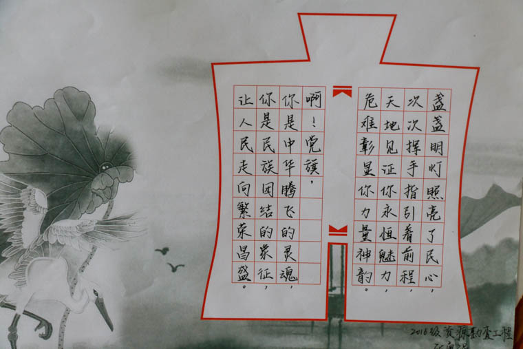 为传承中国优秀传统文化,弘扬党的十九大精神。书法内容的主题特设为两种,一是传统文化,二是党的文化建设。在着重弘扬中国优秀传统书法艺术的同时,引导学生主动学习党的文化知识。