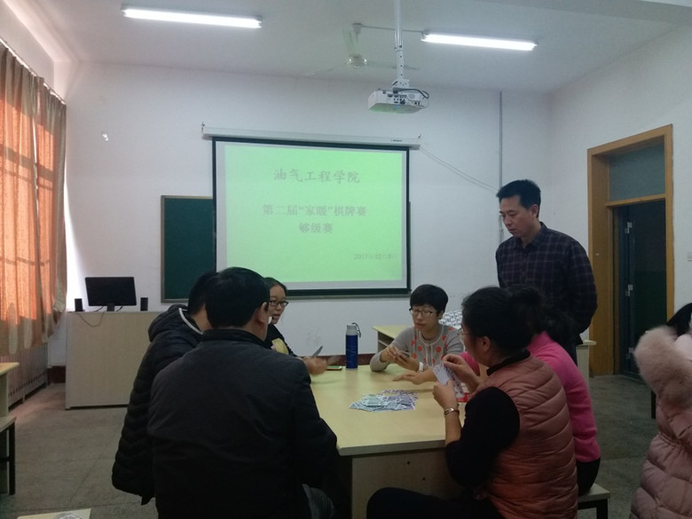 12月8日下午,油气工程学院第二届“家暖”棋牌比赛在石大校区西配楼2005、2007室举行。油气全体教职员工参与了比赛。