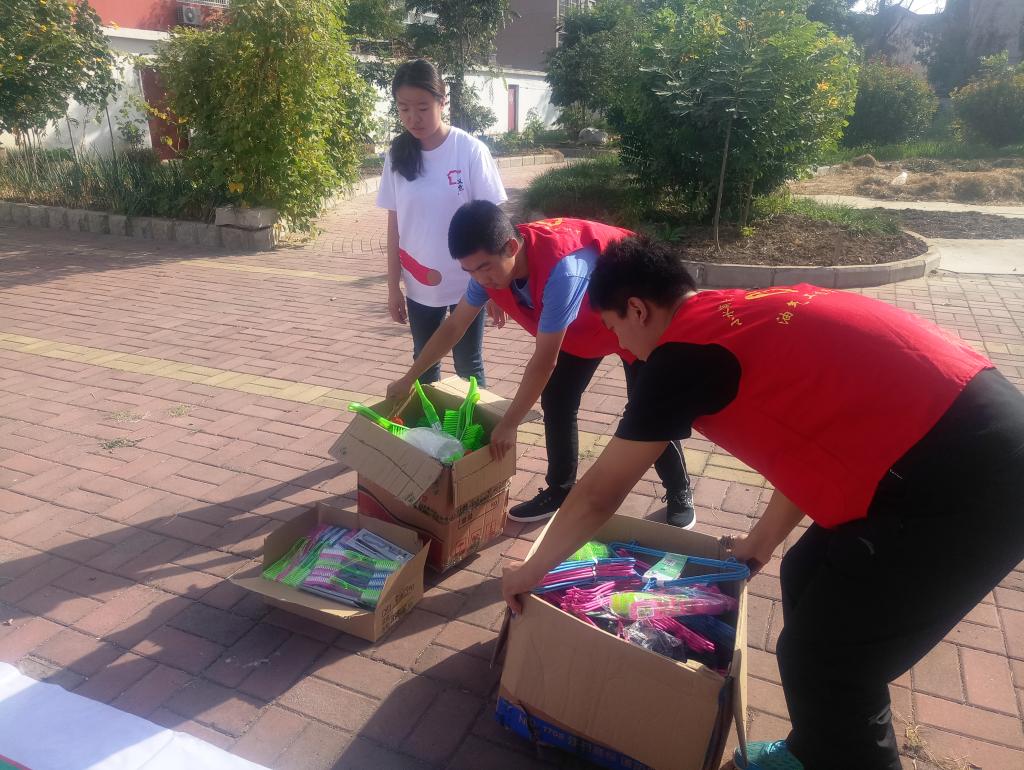 青春喜迎十九大,不忘初心跟党走。9月23日,油气工程学院“小水滴”爱心志愿者服务队与东营齐家社区社工,辛店街道文体活动中心志愿者一起在辛店街道活动中心举办了以“全民喜迎十九大 义仓丰收庆华诞”为主题的义仓日志愿活动。