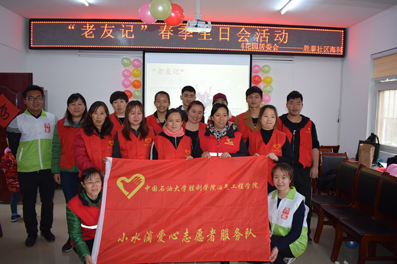 4月8日下午,油气工程学院小水滴爱心志愿者服务队联合齐家社会工作服务中心、红天使志愿服务队,共同为胜泰社区里的老人们举办了一次集体春季生日会。
