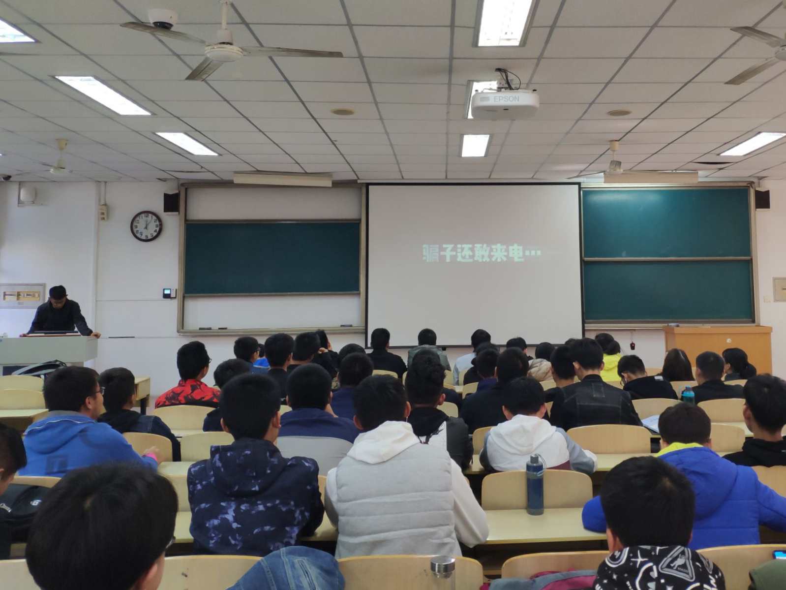 为增强在校大学生预防电信诈骗安全意识,提高大学生对电信诈骗手段的识别和防范能力。2018年10月30号中午,18级资源勘查系全体在第四教学楼召开“防电信诈骗”主题班会。
