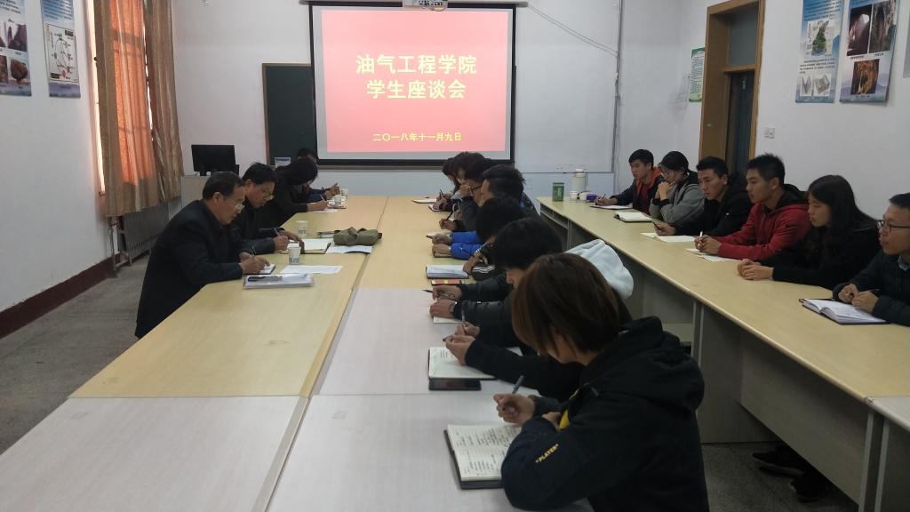 为进一步改善学习环境,了解学生真实需求。11月10下午,油气工程学院在西配楼2005教室召开学生座谈会。教学工作督导委员会主任马存栋,基础院副院长李震,油气工程学院副院长辛艳萍,教学秘书乔英伟老师、辅导员张樱巾老师,以及学院各年级学生代表参加了本次活动。
