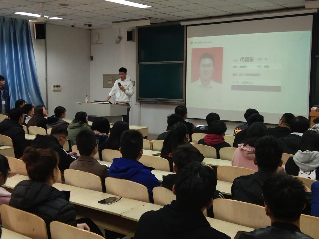 会上,路用瑞和杨光分别对油气储运工程和资源勘查工程两个专业的科学研究进行了简单介绍。他们从自身经验出发和大家分享了在做科学研究过程中的一些心得与感悟,科研道路虽然枯燥漫长,但是却能培养和提高以后工作上必不可少的能力。最后,针对同学提出的问题,路用瑞和杨光进行了耐心解答。
