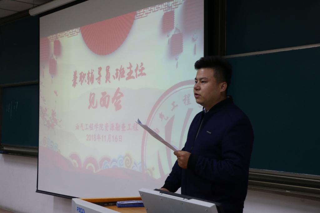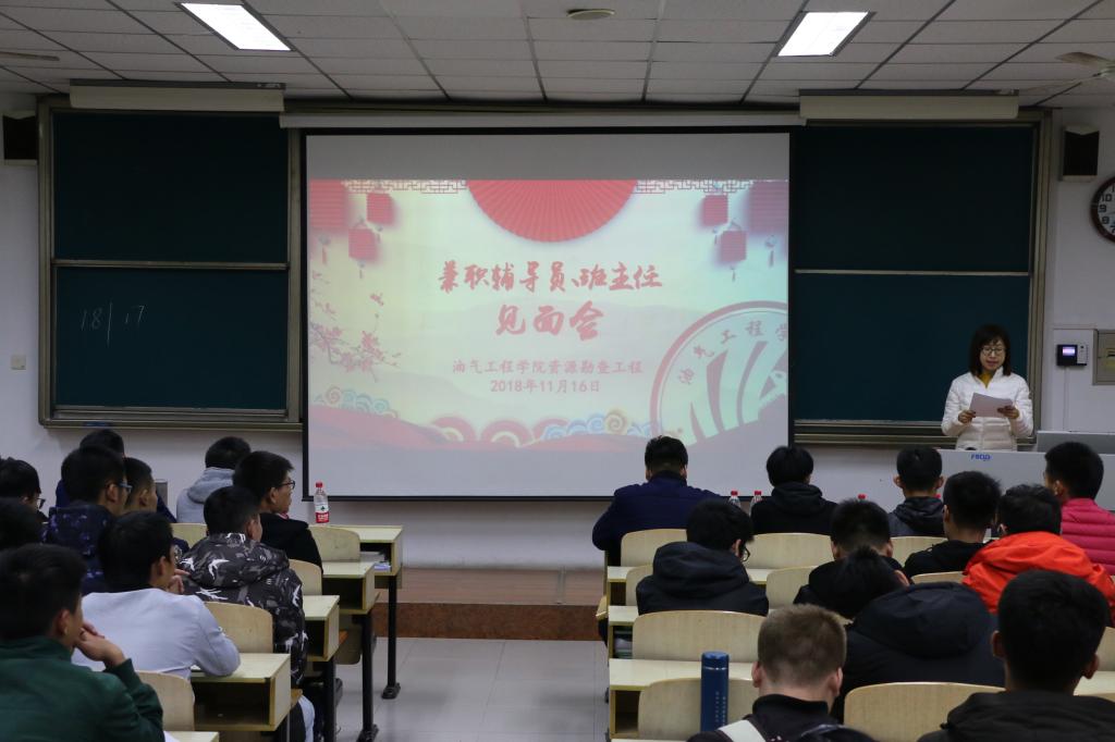 2018年11月16日下午四点,油气工程学院资源勘查工程在石大第四教学楼106教室举行2017级、2018级兼职辅导员及班主任见面会。