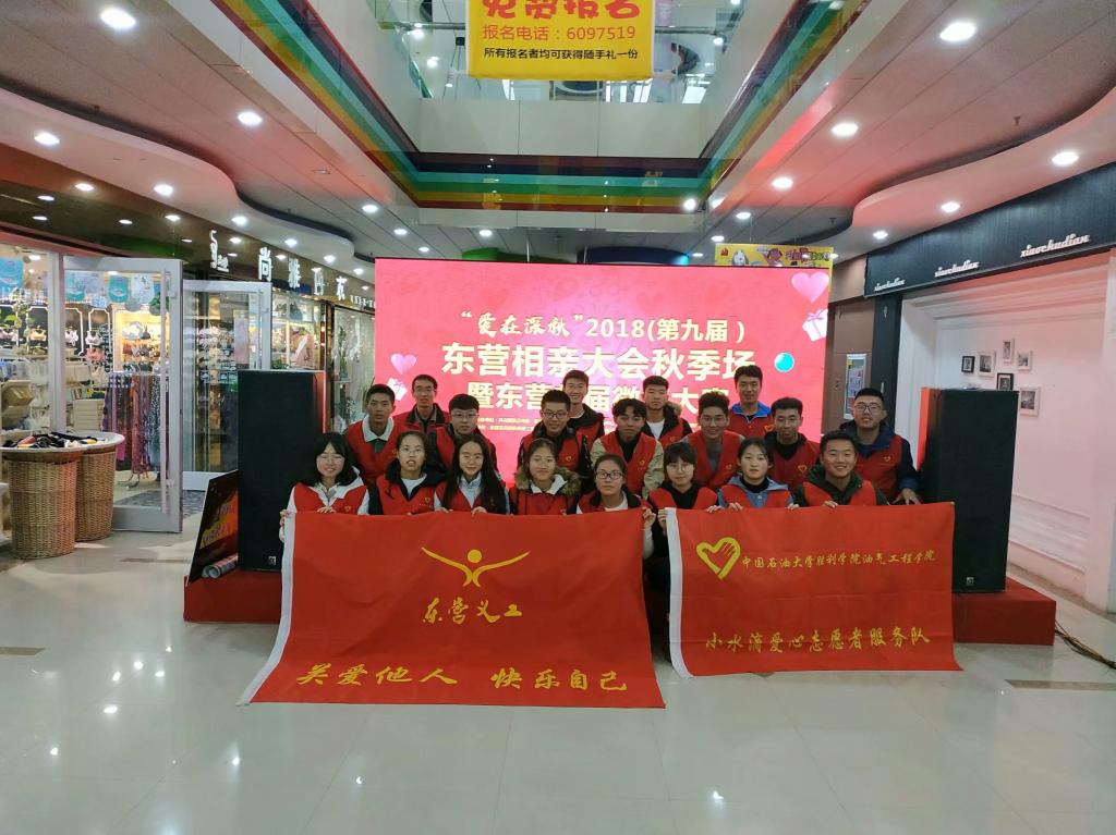 应东营周刊相邀,为缓解现场活动压力,提高工作效率,2018年11月11日,油气工程学院小水滴爱心志愿者服务队参加了由东营周刊在乐活城举办的“缘结乐活,情系东营”相亲活动。