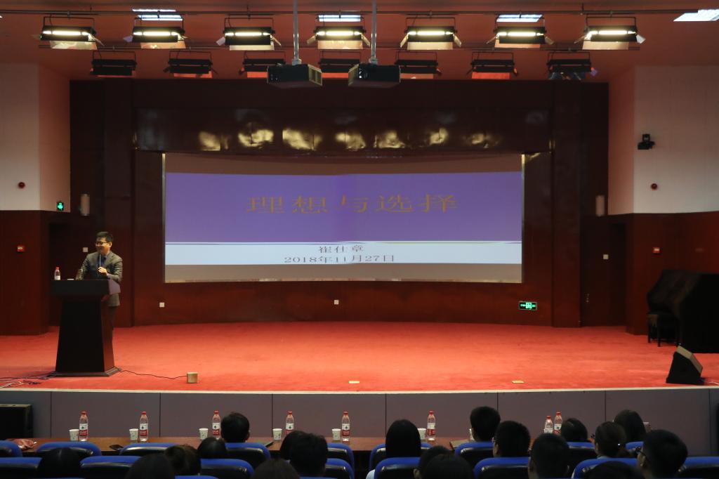 崔仕章总裁讲述了自己主动下到基层、自主创业的个人经历,提出人生要“从高到低,从大到小”。鼓励同学们不要局限于固有的“铁饭碗”。强调同学们要了解行业、单位、自己的情况,根据情况来决定自己未来的方向。他指出“选择应该是理性的分析、判断和抉择”并对“大学生就业选择前应该思考什么”做了讲解。他告诉同学们“学校,给予的是一个对知识的结构性认识;学历,只是一个进入社会的敲门砖,未来靠得是你的综合实力;关系,需要你自己的实力来匹配”。崔仕章总裁还总结了人生职场全过程及职场主流表现。讲座结束后,崔仕章总裁表示了对同学们未来的美好期许。在场的同学们收获颇丰,对未来的规划更加明确。