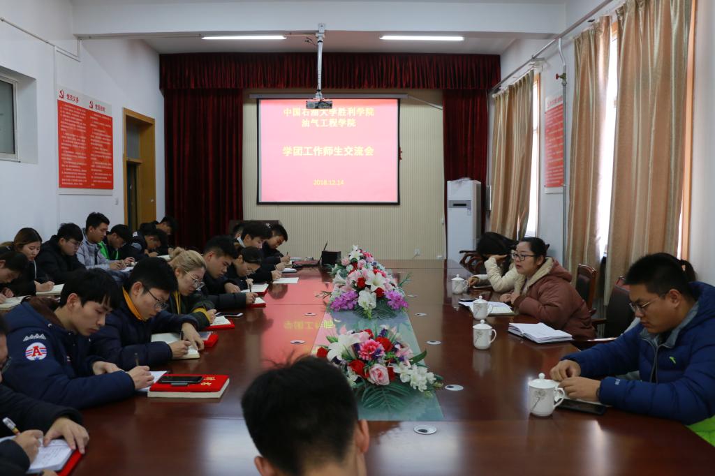 为促进学团活动的深入开展,12月14日下午,油气工程学院于西配楼4004会议室召开学团活动师生交流会。学工办主任毕菲菲、团总支书记胡洪翠、辅导员老师张樱巾、王成及学生组织全体学生干部参加本次会议。