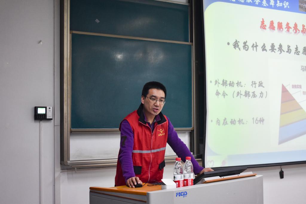 培训开始,南宫雁老师首先为志愿者们讲解了世界各地的志愿者的概况,普及了一些志愿者的相关知识以及国家和联合国对志愿者的重视和一些相关的法律法规,然后还专门讲解了志愿标志的含义,让同学们感到一个标识不仅代表着一个组织,更多的是传承着一种精神和志愿者付出努力获得的荣誉。