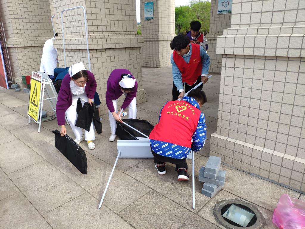 志愿者们通过在活动现场维持秩序、搬动展板、移动易拉宝展架及桌椅等琐碎的事务为专业义诊人员做好了后勤保障。活动进行时,志愿者分为了两组。一组在广场周边发放义诊宣传页,引导市民进行义诊;另一组看管展架,保持现场秩序。活动过程中东营市义工的志愿者们对我们的志愿者们关怀备至,前来义诊的市民均得到了医生们的讲解及建议,市民们纷纷露出满意的笑容,志愿者们也感受到了此次活动的正能量。