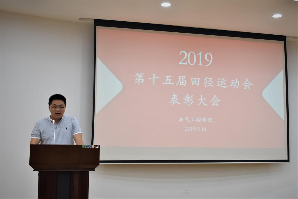 最后章书记代表学院领导做出重要讲话,对获奖同学表示祝贺,对本届运动会的成绩予以肯定,感谢老师和同学们的努力付出,希望同学们继续努力,加强体育锻炼,传承体育精神,为油气工程学院的美好未来贡献一份力量。