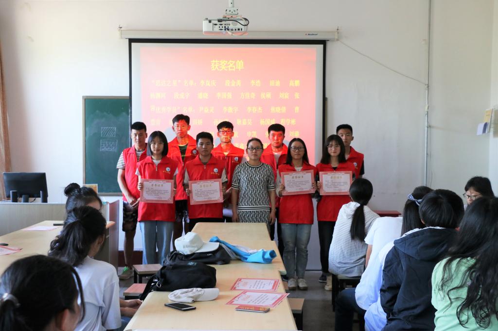 辅导员李聪聪给大家对前五期的思达内容进行了一个大体的回顾,在第一期当中主要对职业生涯的重要意义进行了论述,让大家对自己的职业兴趣有了初步的了解,提升了大家的自我探索能力。第二期中,通过大家对自我的介绍和话剧表演的形式更近一步的阐述了人生的价值观。第三期中,以参观黄河文化馆的形式,向同学们展示了黄河文化的博大精深,传颂了黄河文化经典,树立了文化自信。第四期通过“生涯彩虹图”互动游戏提高了大家合理分配时间的积极性,极大的丰富了他们的内涵修养。最后一期当中李老师为学员们每人送出一本书,让他们去认真阅读,希望能够提高个人辨别能力和自控能力,学会如何与他人和睦交流。最后针对大家在五期活动当中的具体表现,分别对13名“思达之星”和30名“优秀学员”予以表彰奖励。