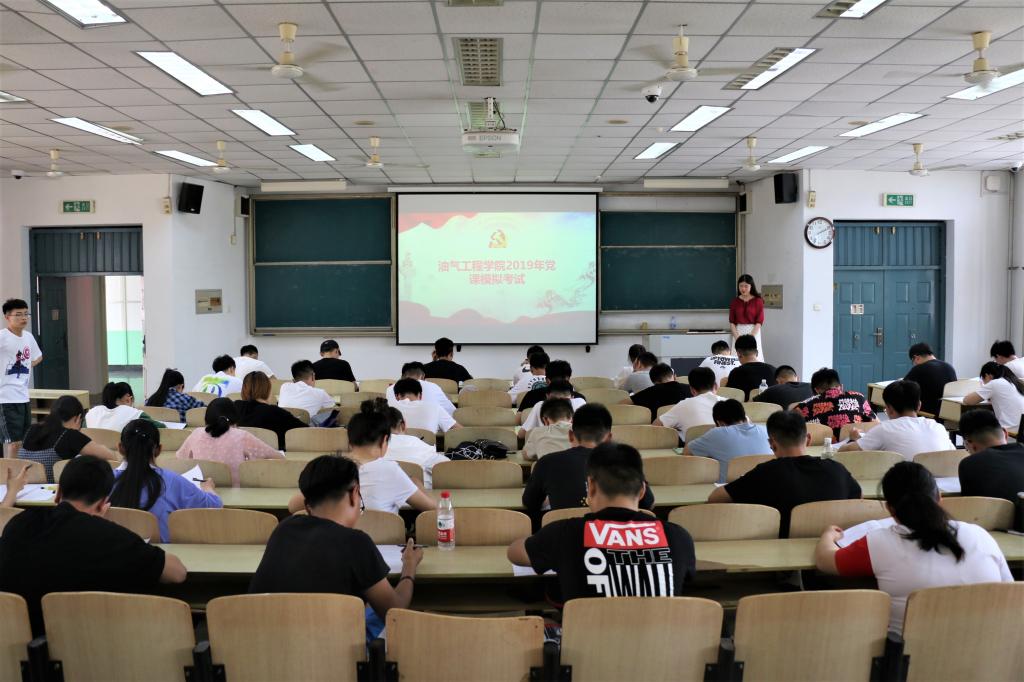 为了加强入党积极分子对党的理论知识的学习,5月26日下午,油气工程学院于四教102教室举办了2019年入党积极分子党课模拟考试,学院61名入党积极分子参加了此次考试。