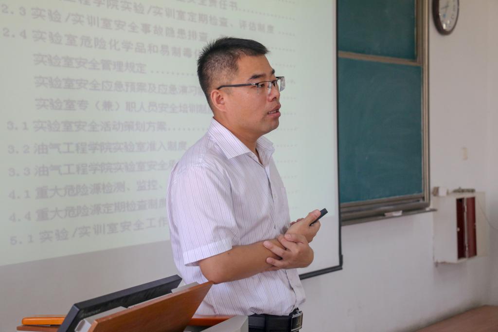 为了在学生心中形成“安全第一”的实验室氛围,使广大学生了解更多的实验安全常识,提高安全防范意识,真正将实验安全知识运用到实验生活中,真正落实“安全上心,实验顺心”的方针,保证学生在实验中的安全。9月30日,油气工程学院在4406教室举行了实验室安全教育培训活动,油气工程学院综合办公室副主任印树明老师担任主讲人。
