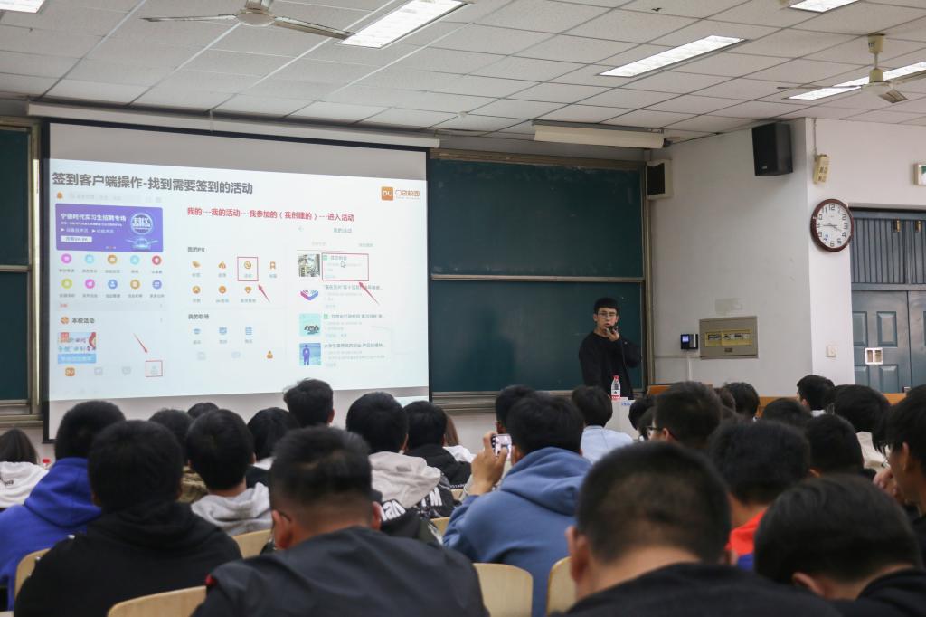 活动由郑国浩为新生介绍pu口袋课堂软件,并详细讲解新生应该如何使用以及遇到的问题和解决方法,活动过程中同学们认真听讲,表现出极大的兴趣以及对使用pu口袋校园的期待,郑国浩生动的宣讲让同学们更好的认识到pu口袋校园在大学时代的重要性,使此次活动圆满成功。