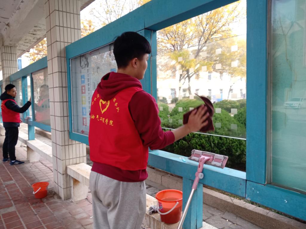 为加强学生对“不忘初心、牢记使命”主题教育的认识,2019年11月9日上午9点15分由油气工程学院小水滴爱心志愿者服务队组织的“校园美容师”清理活动就此展开,志愿者们在队长王晓康和副队长邢璐瑶的带领下在胜院二餐集合。