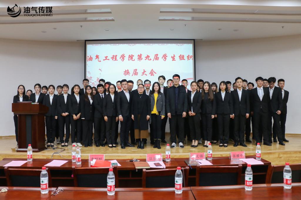 团总支书记伍佳慧宣读了第九届学生组织干部名单。油气工程学院第九届学生会主席王佳辉同学作为新一届学生干部代表进行讲话,表达了对接下来的工作设想与信心,并带领在场的新一届学生组织成员宣誓。
