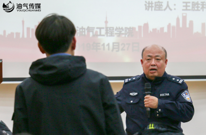 为培养大学生安全意识,加强大学生自身安全防范能力,11月27日下午,油气工程学院在图书馆学术报告厅举办“安全活动月系列讲座——怎样做好自身安全防范”活动。本次讲座有幸邀请到新星派出所二级警督王胜利警官,油气工程学院党总支书记章志军,辅导员老师王成、李老师出席此次活动。