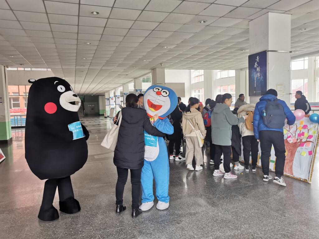 活动伊始,“正能量”心理协会所有干事于第四教学楼大厅准备好问候墙和宣传展板。穿着“熊本熊”和“哆啦A梦”服装的同学们对往来师生表示热烈欢迎,由协会干事向往来师生对本次世界问候日活动做出宣传。在心协成员的热情相邀之下,同学们纷纷留言问候家人、朋友,将自己对家人、朋友的美好祝愿写于便利贴上,然后将自己的美好祝愿粘贴在问候墙上并签下了自己的名字,参与活动的同学们都可以领取精美小礼品一份。有的同学们还与“熊本熊”和“哆啦A梦”热情地拥抱,并合影留念。最后在全校师生的积极配合下,此次活动圆满结束,所有工作人员拍照留念。