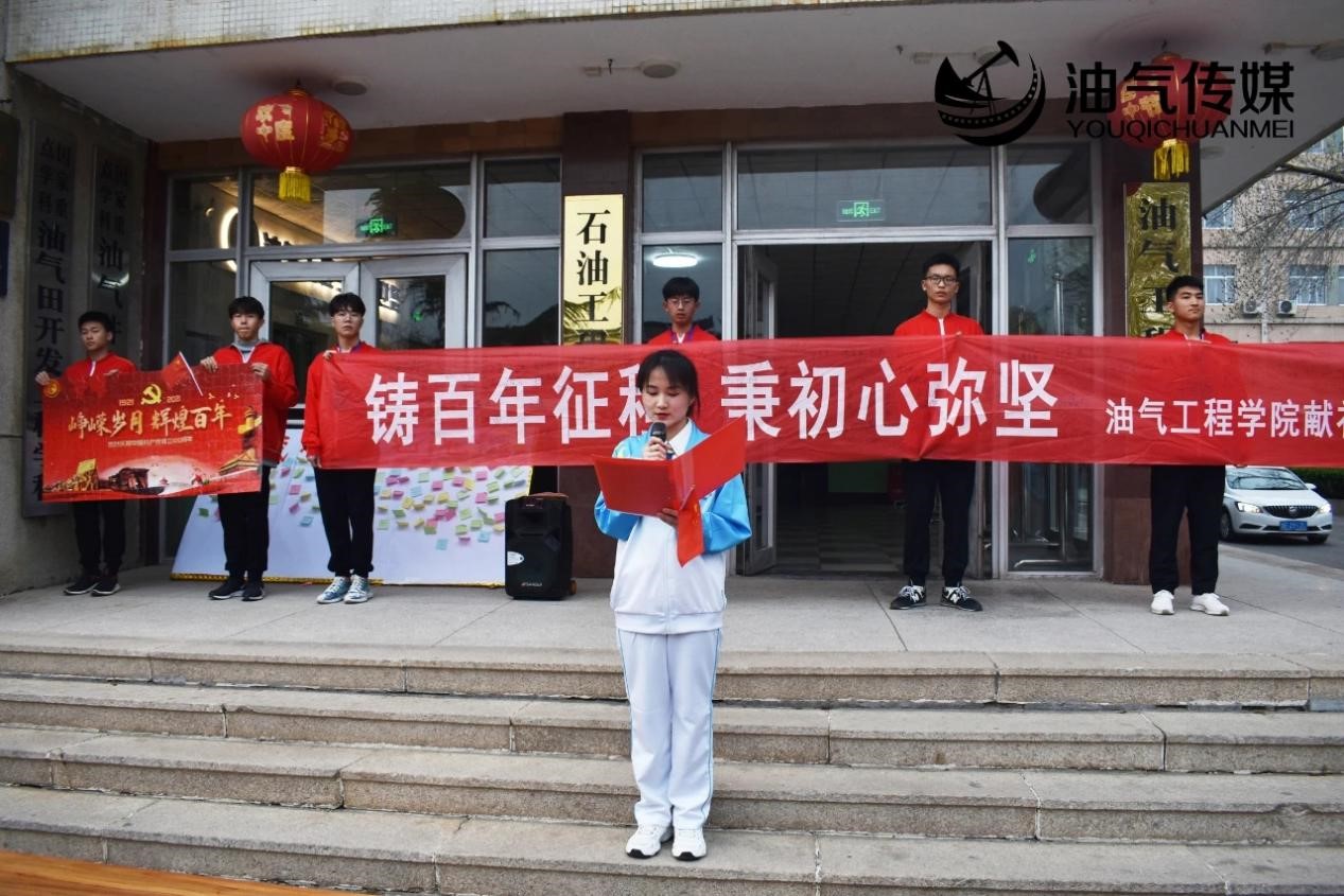 活动颁奖仪式在西配楼前举行,油气工程学院党总支副书记李聪聪为获奖队伍颁奖。随后,学生党员代表段金芮发言,她表示学生党员是大学生中的优秀分子和先进代表,身为党员更需要有开拓拼搏的精神。最后由辅导员李老师做活动总结,李老师表示,每个人都要以认真负责的态度、改革创新的精神、求真务实的作风,给党以最真诚的回报,最满意的答卷,以优异的成绩向建党一百周年致敬。