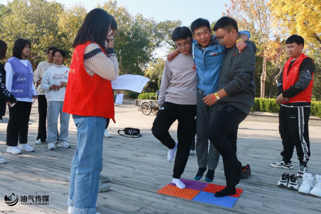 活动开始,由油气工程学院团总支副书记巩立伟进行了赛前发言。本次活力挑战赛采用“123木头人”游戏决定了队伍出发顺序。并结合体力挑战和知识问答设置“滚雪球、送鸡毛信、指压板挑战、你比我猜、气球运输、听歌识曲、瞎子背瘸子、知识竞赛、飞花令、头脑风暴”十项游戏项目。活动采用了积分打卡制度,积满100分及以上即可返回起点,若队伍同时到达则按积分排名,若积分相同则按时间排名。活动现场朝气蓬勃,气氛热烈,油气院的学子们在活力挑战中争分夺秒、积极进取。