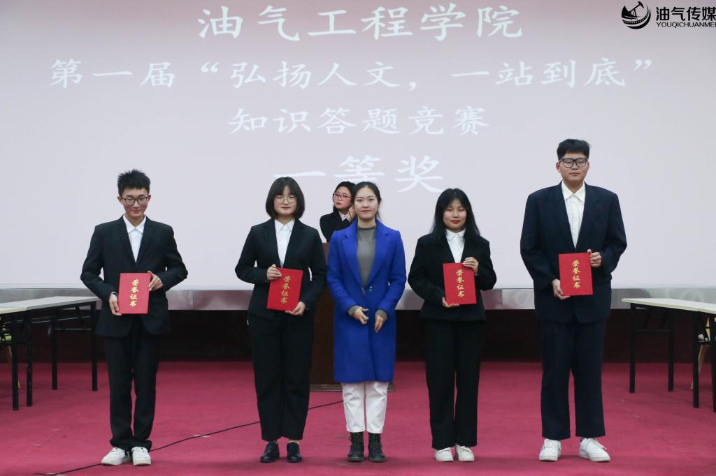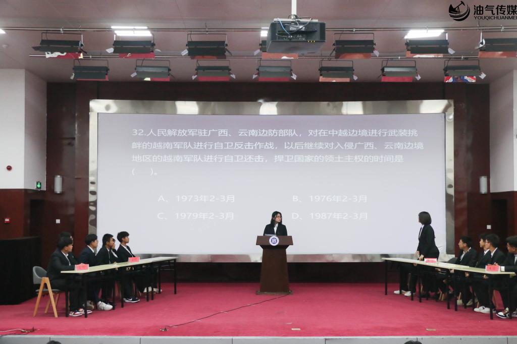 为帮助学生更好了解中国传统文化,从人文中汲取精神,启迪心灵,增强其中华文化自信,进一步提高爱国情感。2021年12月2日晚上七点,由油气工程学院团总支秘书处主办、团总支组宣部协办的“弘扬人文·一站到底”知识竞赛决赛于永利集团音乐厅落下帷幕。油气工程学院团总支书记伍佳慧,新生班主任石达友、范文彬应邀莅临本次知识答题竞赛。