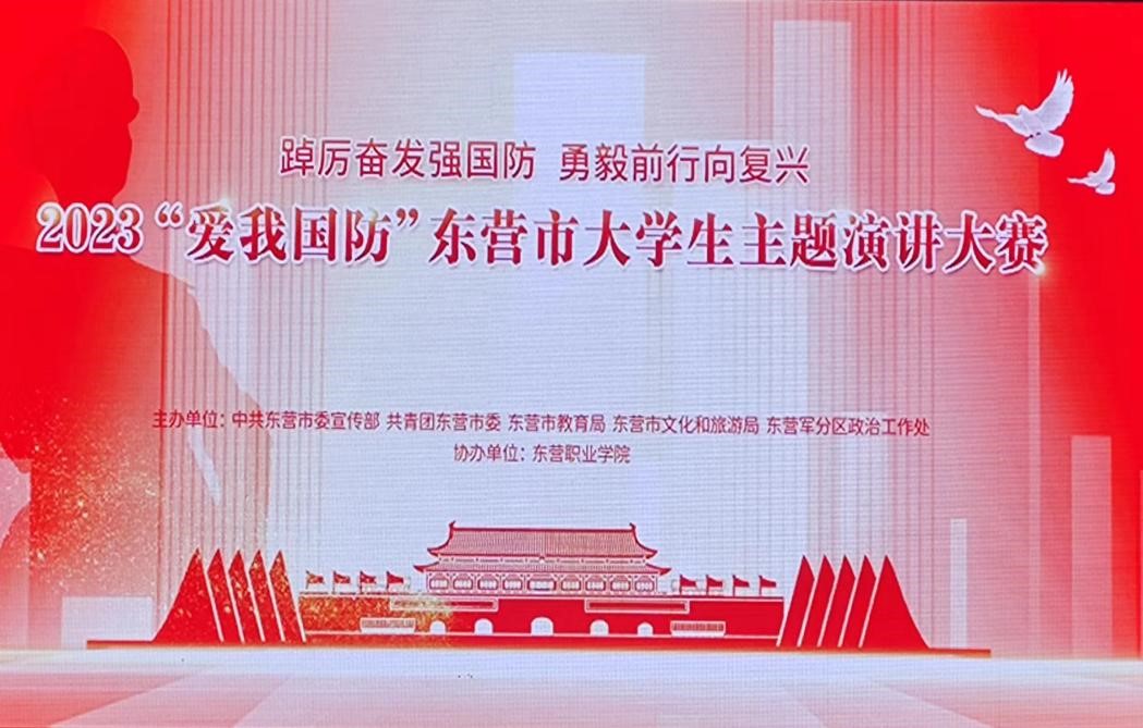 11月8日,2023“爱我国防”东营市大学生主题演讲大赛在东营职业学院大礼堂成功举办。本次比赛由东营市委宣传部、团市委、东营市教育局、东营市文化和旅游局、东营军分区政治工作处联合主办,以“踔厉奋发强国防、勇毅前行向复兴”为主题,旨在激发广大学生关心国防、热爱国防、建设国防、保卫国防的政治热情和行动自觉。