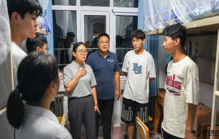 9月7日迎新当天晚上,我院李聪聪老师带领辅导员队伍走访2024级新生宿舍。