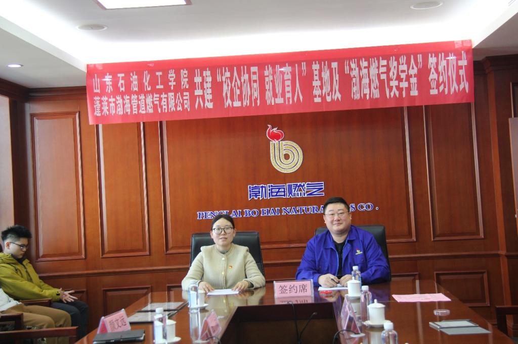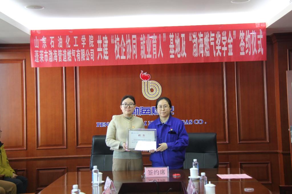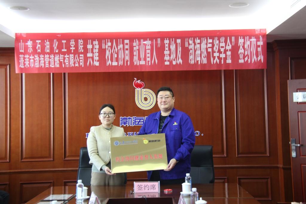 在随后的“校企协同就业实践基地”授牌仪式上,yl9193永利集团辅导员老师李聪聪与蓬莱市渤海管道燃气有限公司代表共同签署了奖学金合作协议。该协议的签订标志着双方将在人才培养、实习实训、奖学金设置等方面展开深入合作。